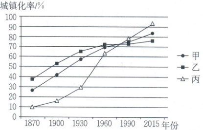 7.B 【解析】德国城镇化起步早,初始城镇化水平最高,故乙是德国;三国中日本城镇化发展最快、初始水平最低,故丙是日本,甲是美国。B项正确。