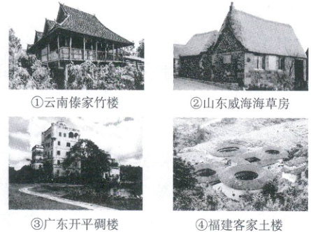 [西宁湟川中学月考]下图为我国各地的传统民居景观。读图,完成2、3题。
