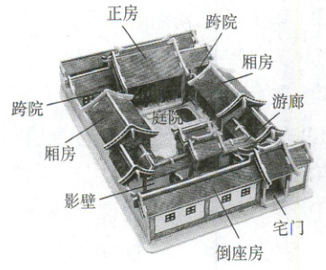 6. 民居中的正房一般供长辈居住。受当地地理环境的影响,图示民居中的正房多位于其庭院式建筑中的(