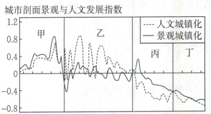 3.A 【解析】根据材料中定义可知,景观城镇化和人文城镇化指数越高,城镇化发展水平越高。在该城四个区域中,甲区域景观城镇化和人文城镇化指数均较高,且二者水平相差较小、发展同步,故城镇发展水平最高的是甲区域。