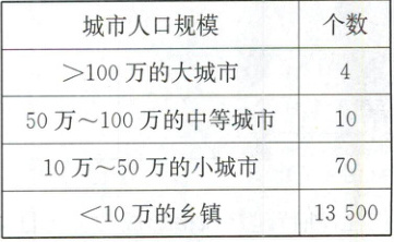 [宜昌模拟]下表是德国不同规模城市个数统计表,下图示意德国不同规模城市及乡村人口比例。据此完成下题。