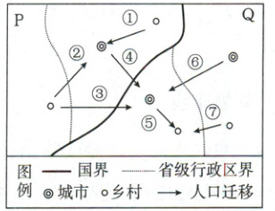 2.C 【解析】由图上信息可知,P国国内人口迁移主要是由乡村到城市,且人口流向国外,应为发展中国家;Q国国内人口迁移主要是由城市到城市,还存在城市流向乡村的情况,应为发达国家。C项符合题意。
