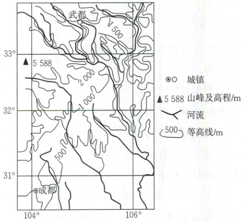 [资阳调研]花椒,落叶灌木或小乔木,多刺,喜光,耐寒,耐旱,果实需人工采摘,可用作调料、药材。武都素有“千年椒乡”之称,古书有“蜀椒出武都”的记载。读下图,完成3、4题。
