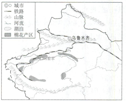 (3)气候干旱,降水稀少,水资源不足;远离消费市场;棉花采摘期劳动力不足;交通不便,棉花运输成本高。