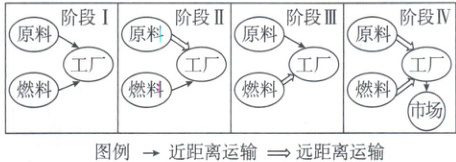 [安庆一中月考]下图表示某种工业区位选择的历史发展阶段。读图,完成7、8题。