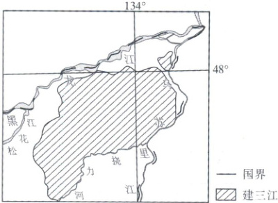 建三江位于三江平原腹地,于 1957 年开始垦荒,目前面积 1.24 万平方千米,人口 20 多万,这里空气清新,水源丰富且水质优良,土壤肥沃。近年来,建三江重点种植水稻,有“中国绿色米都”之称。建三江采用现代技术科学生产,如定点监测土壤肥力并精准施肥。下图示意建三江的位置和范围。