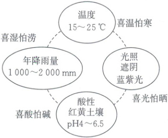 [南京一中月考]近日,江苏宜兴“阳羡茶”获得国家地理标志证明商标。宜兴市某茶企业通过整合特色山水,建设集茶树种植、茶叶加工储存、旅游和文化为一体的现代茶庄园。下图表示茶树生长的适宜条件。读图,完成1、2题。