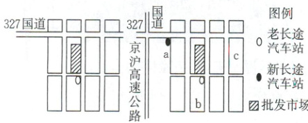 [江门一中月考]下图示意山东省某城市京沪高速公路修建前后批发市场、公路和长途汽车站分布。读图,完成 1、2 题。