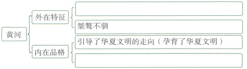 1. 【语文要素】请抓住“黄河”这条线索,梳理文章内容,并补全思维导图。(2 分)