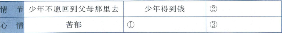 1. 【语文要素】结合短文内容,把故事情节和少年的心情补充完整。(3 分)
