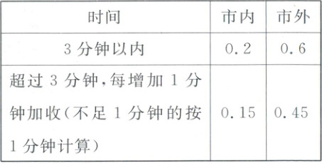 四、某市固定电话打电话收费标准如下表:(单位:元)