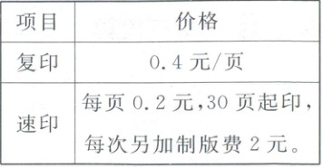 三、复印:0.4×25 = 10(元) 速印:0.2×30 + 2 = 8(元) 10>8 速印比较省钱。