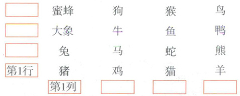 1. 图中“狗”的位置在第2列第4行。