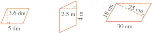 $3.6×5 = 18(dm^{2})$ $4×2.5 = 10(m^{2})$