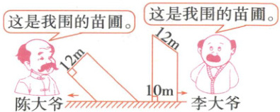 八、陈大爷和李大爷分别用 60 m 长的篱笆围成了一块靠着一面墙的梯形苗圃(如图)。谁围的苗圃面积大?