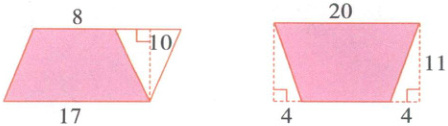 (10+8)×7÷2=63(cm²) (8+12)×9÷2=90(cm²)