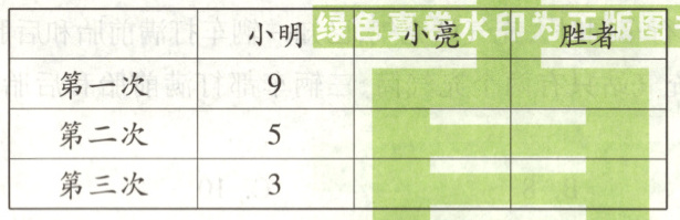 2. 小明和小亮玩“比卡片”游戏。小明的卡片是 3,5,9,小亮的卡片是 2,4,8。两人每次各出 1 张卡片(每张卡片只能出一次),比较两张卡片上数的大小,数大的一方获胜,采用三局两胜制。小明按 9,5,3 的顺序出卡片,小亮要想获胜,他应该怎样出卡片? 请完成下表。(6 分)