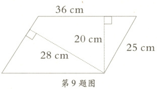 9. 如图,平行四边形的高是28 cm,它的底是(