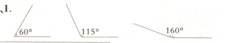 1. 选择合适的方法画出度数为60°、115°和160°的角。(3分)