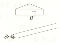 1. 张叔叔要从家门口的 B 点修一条路与门前公路相连,怎样修路最短? 请你画一画。(2 分)