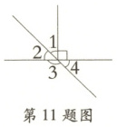 11. 如图,已知 $∠1 = 42°$,则 $∠2 = ($