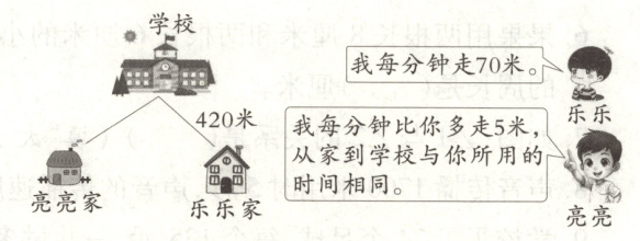 1.420÷70 = 6(分钟) (70 + 5)×6 = 450(米)