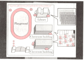 八、新题型·开放性试题 Danny 的学校漂亮吧?那你的学校是什么样子的呢?根据提示,画一画并补全短文吧!