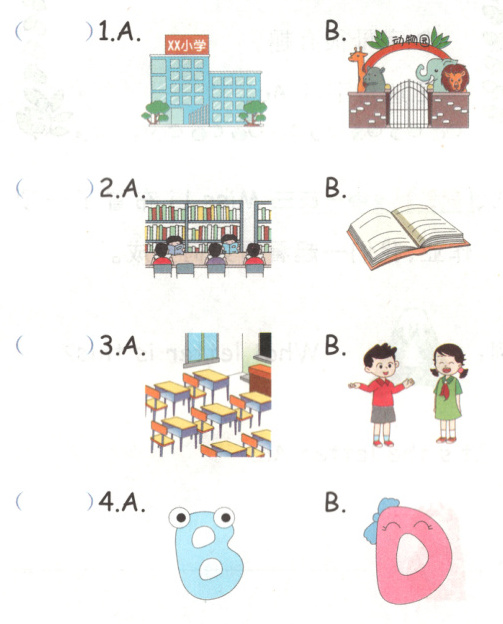 一、Bob 在和妹妹 Kate 聊自己的学校生活,他说了什么?选择正确的图片。