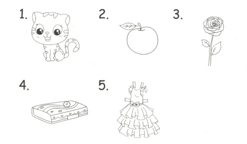 二、Mary 想给下面的图片涂上漂亮的颜色,听一听,根据听到的颜色帮她涂一涂吧!