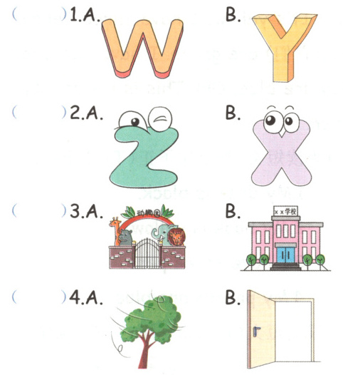五、新角度·趣味识图 Jim 发现下面的单词不完整,请你根据图片提示选择合适的选项补全单词。