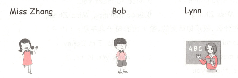 十、Lynn和Bob在公园遇到了Miss Zhang,他们进行了简单的对话,选择正确的一项,补全对话,并完成连线。(13分)