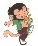 I'm a monkey. My 1.________ is Coco. Look! I have a 2.________ banana in my 3.________. I feel very 4.________. I have 5.________ eyes and two 6.________.