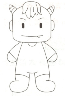 Hello! I’m a monster(怪物). My body is green. I have two heads, four arms, four hands, five legs and five feet. Look! I have three apples and an orange. I am happy.