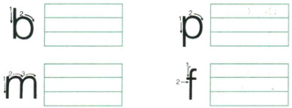1. 想一想,下面的声母住哪几格,再按照笔顺写一遍。
