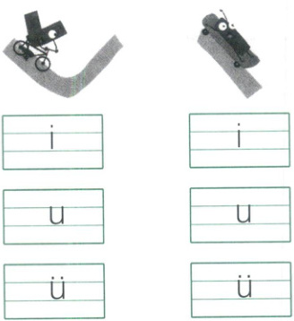 3. 根据图片提示,给下列字母标上相应的声调符号。