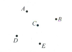 画直线$DE$:过$D$、$E$两点用直尺画出直线$DE$。