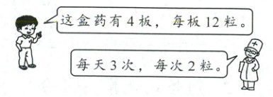 (2)12×4÷(2×3)=8(天) 答:这盒药够吃8天。