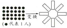 4. 学校运动会开幕式表演上,三(1)班的队形变换如下图所示,那么变换后的队形平均每排有几人? (4 分)