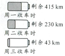 (2)(630 - 415) - (415 - 230)=30(千米) 答:王师傅周一比周二多行驶了30千米。