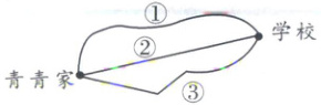 12. 如图,青青家到学校有3条路线,某天早上,青青起晚了,为了尽快到达学校,你建议她走( )号路线。