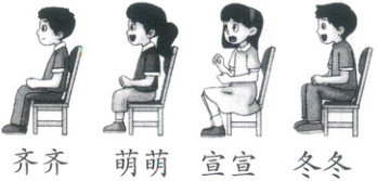 (1) 齐齐坐在最( )面,冬冬坐在最( )面。