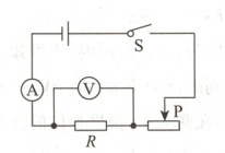 (1)用导线把电源、开关、用电器、电阻、电流表串联在一起,电压表与电阻并联,如图所示: