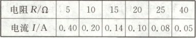 由数据可知,电流与电阻的乘积U = IR = 0.4 A×5 Ω = ⋯ = 0.05 A×40 Ω = 2 V,电流与电阻的乘积为一定值
