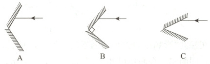 (3)如图所示,两块平面镜成一定夹角构成角反射器,一束光线射向角反射器,经两次反射就能模拟天都一号上的角反射器效果的是