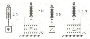 12. 在探究“影响浮力大小的因素”实验中,小明选用体积相同的实心金属块甲和乙,实验过程如图所示,他探究的问题是(