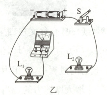 (2)如图乙所示,请用笔画线代替导线按要求完成电路连接。要求:小灯泡L₁与L₂串联,电压表测量小灯泡L₁两端的电压。