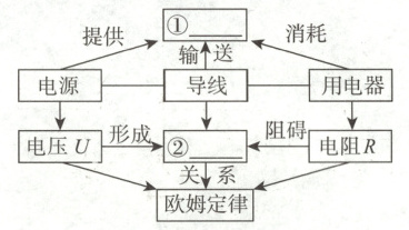 19. 如图是电学知识部分结构图,请补充完整。