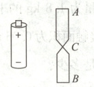 15. 将包装口香糖的锡箔纸剪成如图所示的形状,其他条件相同时,C处的横截面积小,电阻