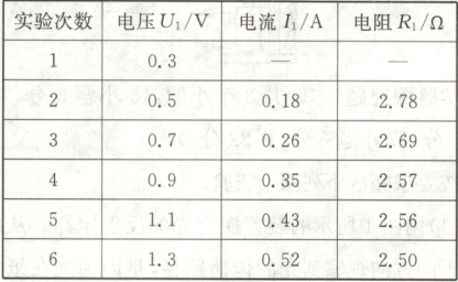 。将全部数据记录在下表中,计算出对应的电阻。(5)实验数据表明,铅笔芯的电阻是变化的,经分析,影响该变化的因素是