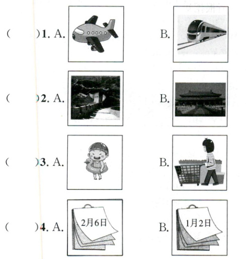 ( )1. A. This is a bus. A bus is slow. B. This is a train. A train is fast. C. This is a plane. A plane is fast.